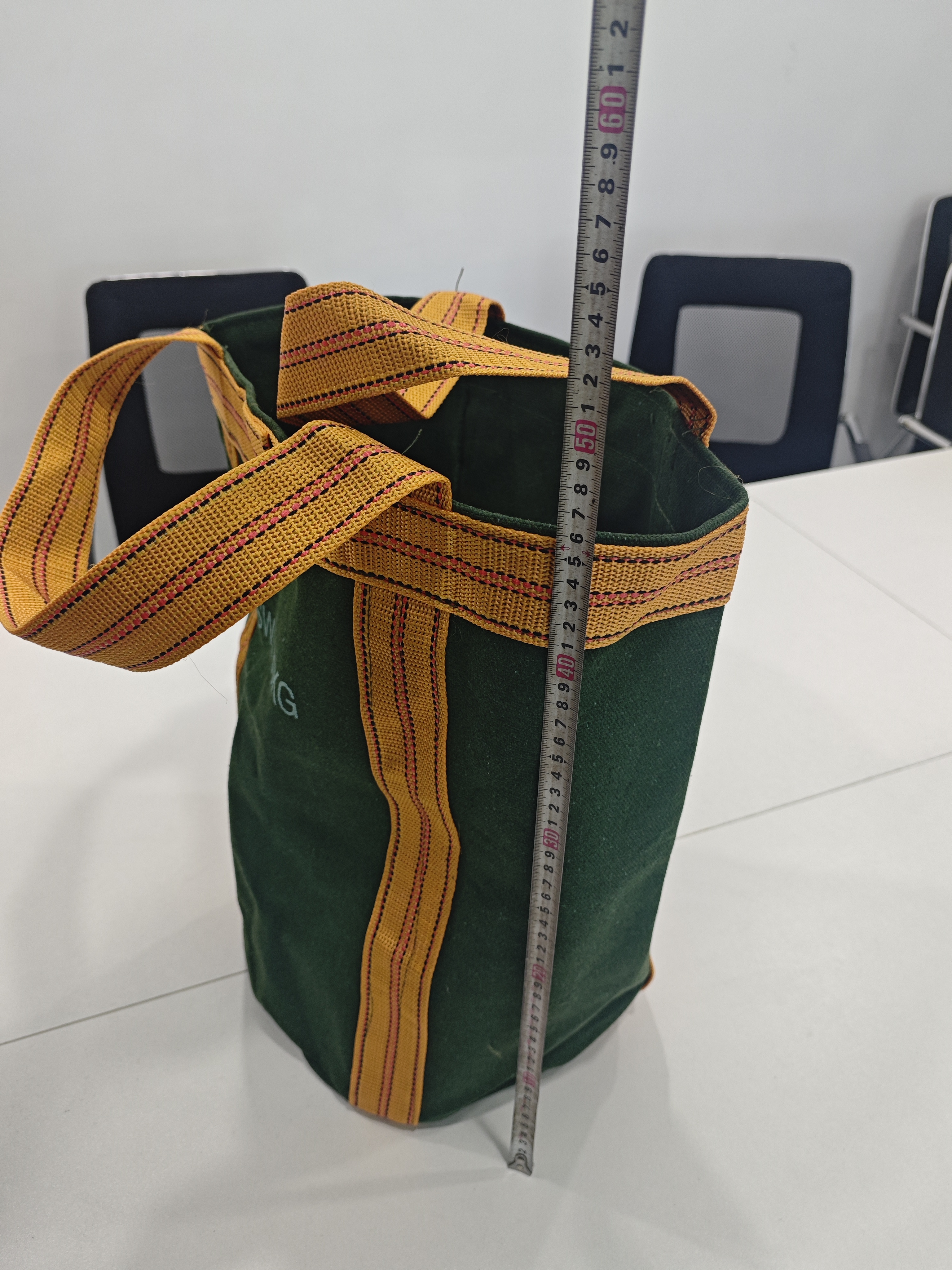 | SWL: 30KG Size: Diameter 32cm, Height 45cm Unit Weight: 0.7kgs Material: 600g Canvas Tensile Strength >4000N Handles: 2 Loop liftsType: Open end Packaging: 20pcs/carton Carton Size:60cm*50cm*35cm |