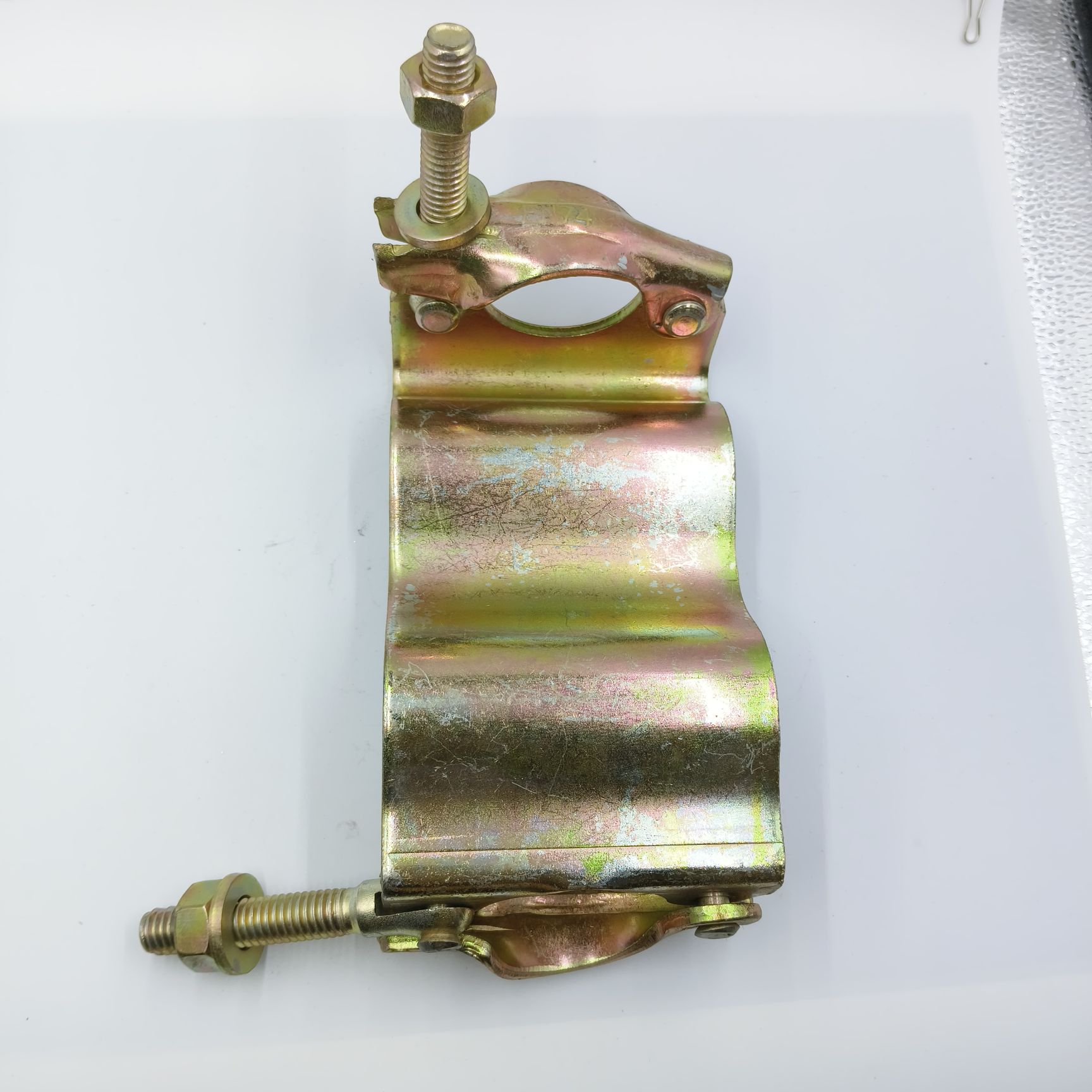 Çelik Preslenmiş Çatı Kaplama bağlayıcısı, 76,2 mm aralıklı 0,7 mm kalınlığında oluklu demir levhayı geçici bir çatıya sabitlemek için kullanılır.